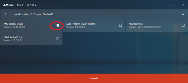 Извлекаются установочные файлы в созданную папку AMD, которая ранее была удалена нами. Пользователь при желании может подобрать другое место, но по умолчанию выбрана данная директория. Кликаем на «Установить».