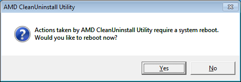 Для загрузки утилиты потребуется активировать «AMDCleanupUtility.exe» файл, который автоматически запускается после появления подтверждения деинсталляции драйвера. Утилита предоставит информацию о завершении процесса деинсталляции и предложит перезагрузить ПК. Кликните на «нет», поскольку требуется выполнить еще одно действие.